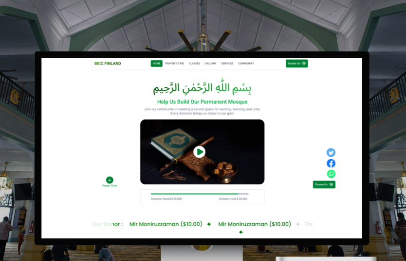 Islamic Center platform managing Quran classes, community donations, and religious services.