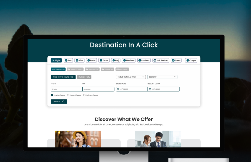 Travel Agency Web Solution (Under Development) featuring B2B/B2C flight booking designs.